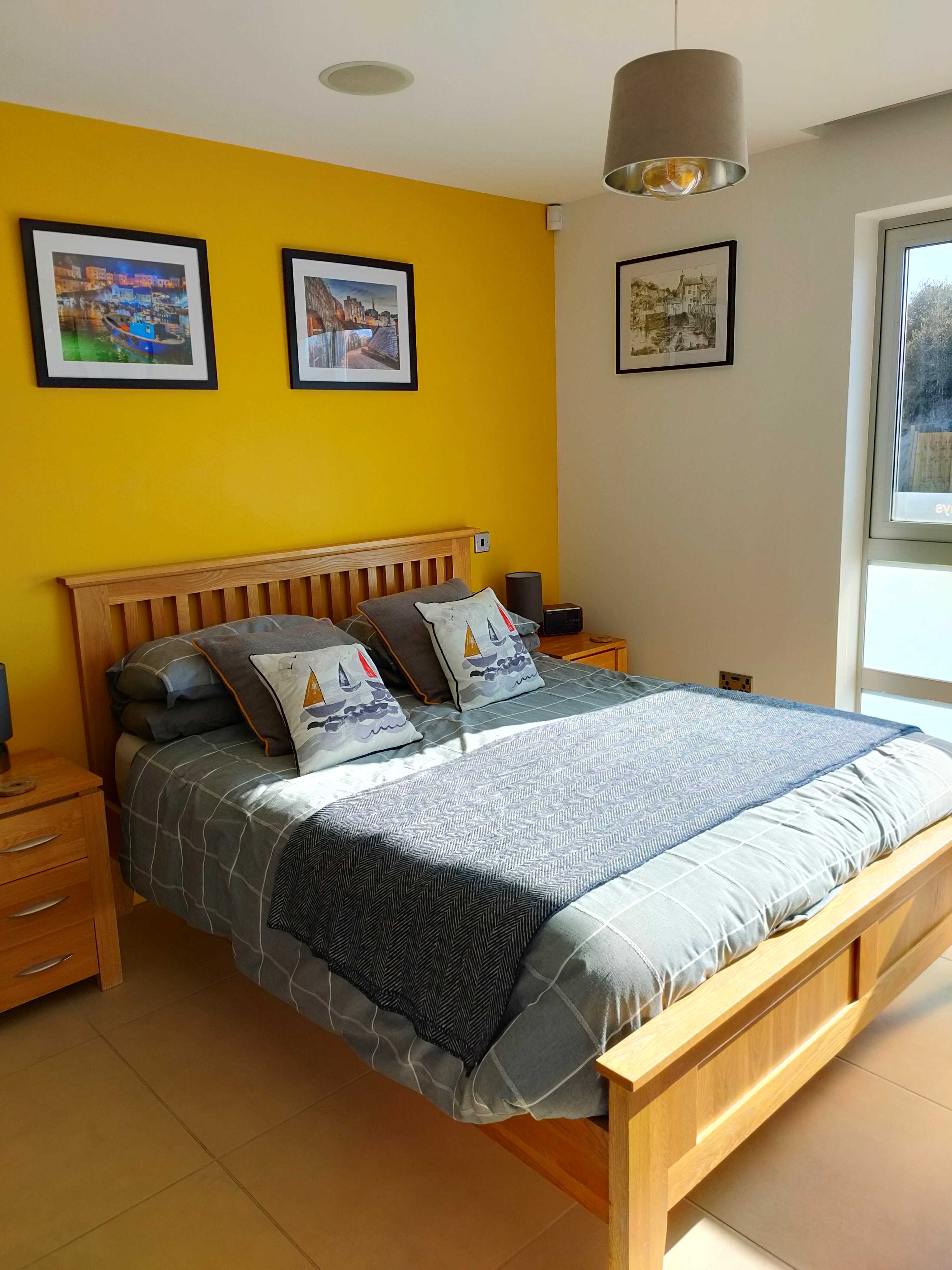 A spacious and luxurious room with a king-sized bed. Large built-in wardrobes mean there's plenty of clothes storage for those holiday essentials! LG 32" Smart TV with catch-up and internet plus a Wi-Fi clock radio so that you can wake up to your favourite radio station, wherever in the world it is (note: FM and DAB reception at Water's Edge, beneath the cliffs, is poor and hence the need for an internet radio)!